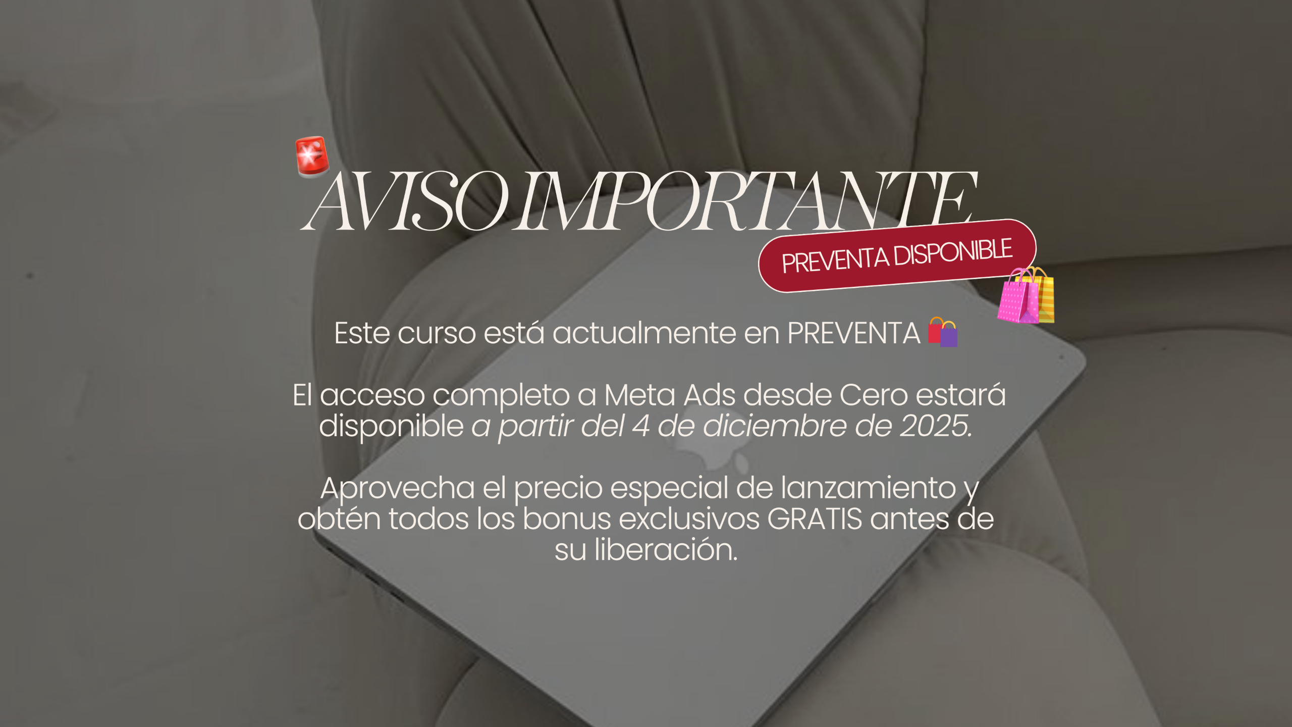 En Meta Ads desde Cero te enseño exactamente cómo crear anuncios que venden sin enredos técnicos, sin miedo a invertir y con una estrategia que sí funciona.